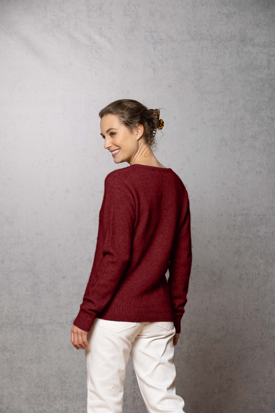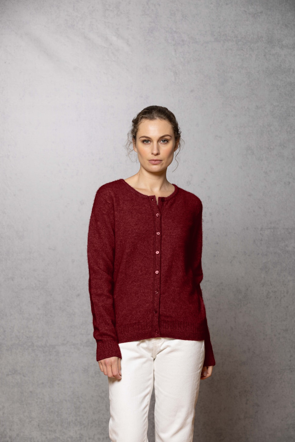 Our slim line fashion cardigan with crew neck, finished off with Paua shell buttons.