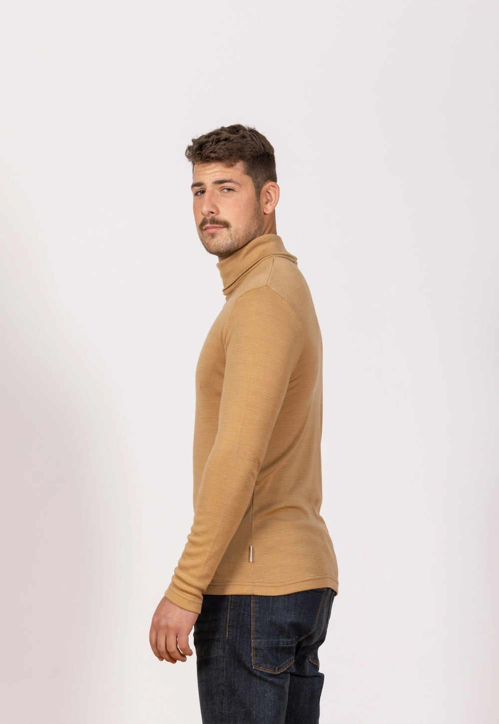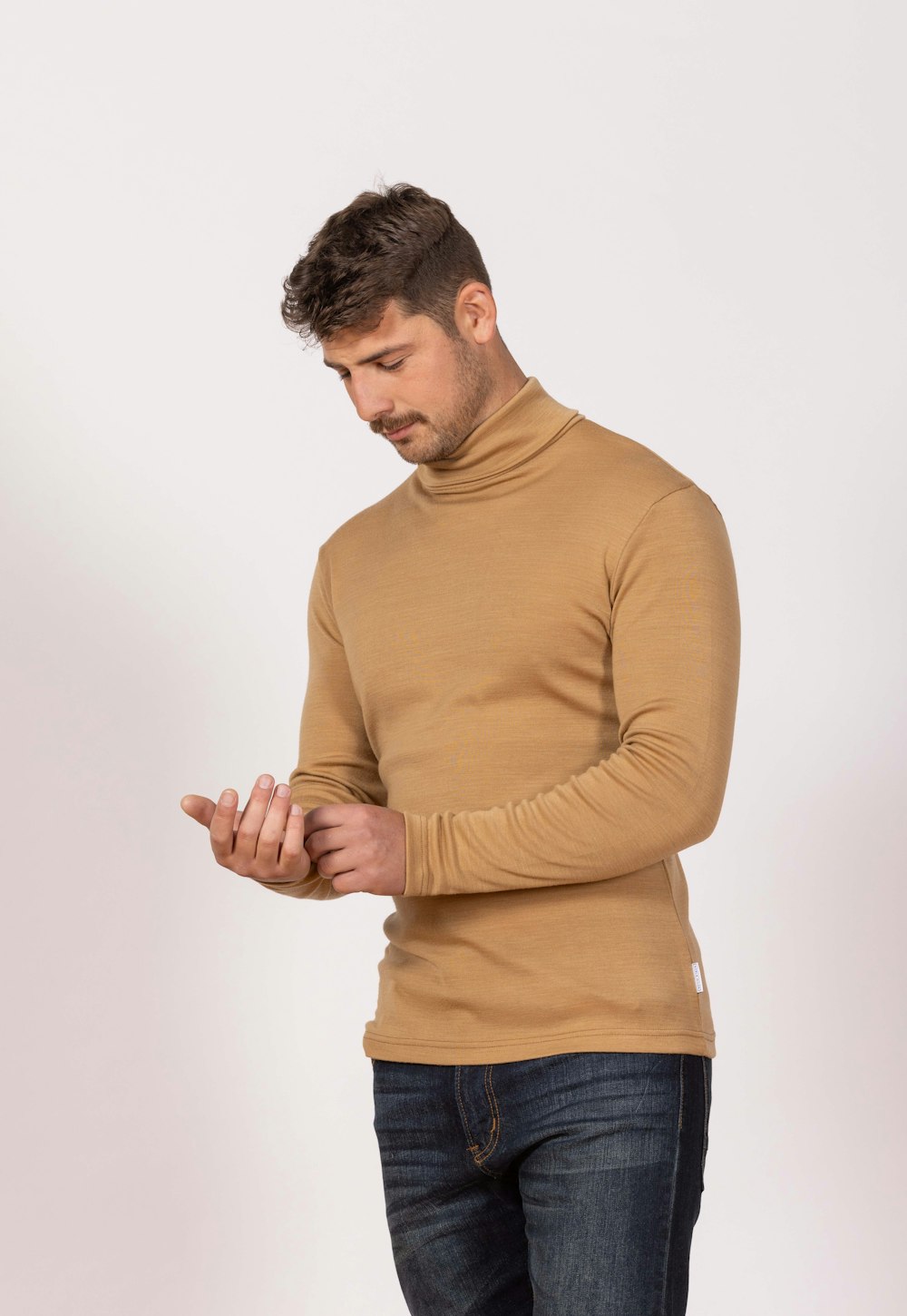 100% superfine merino rib knit for extra stretch - Classic Polo Neck garment perfect to wear under your sports jacket.