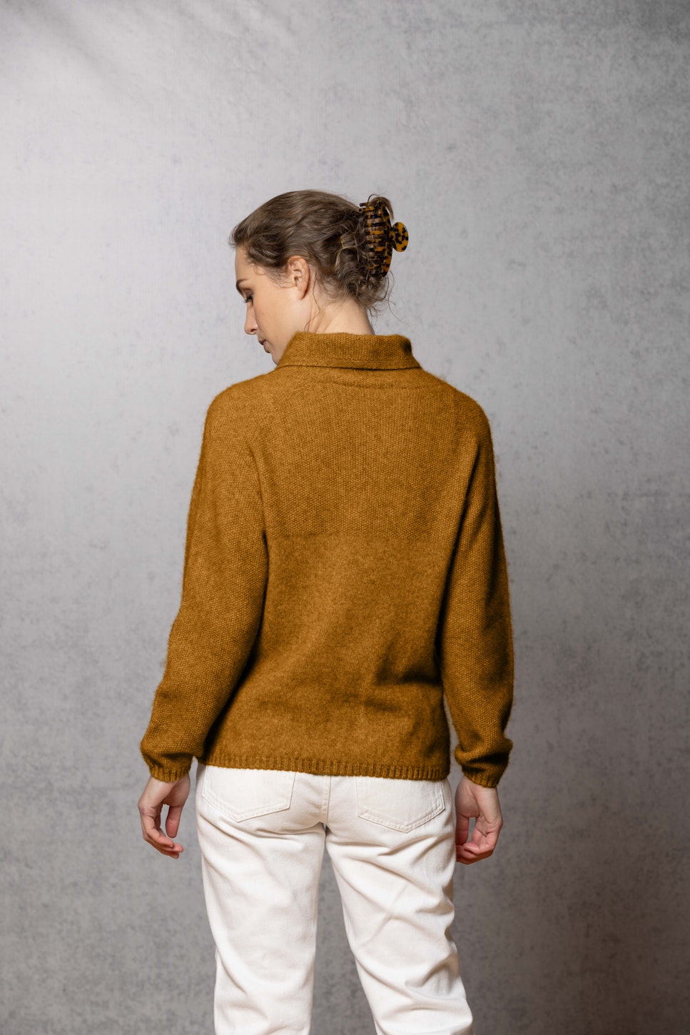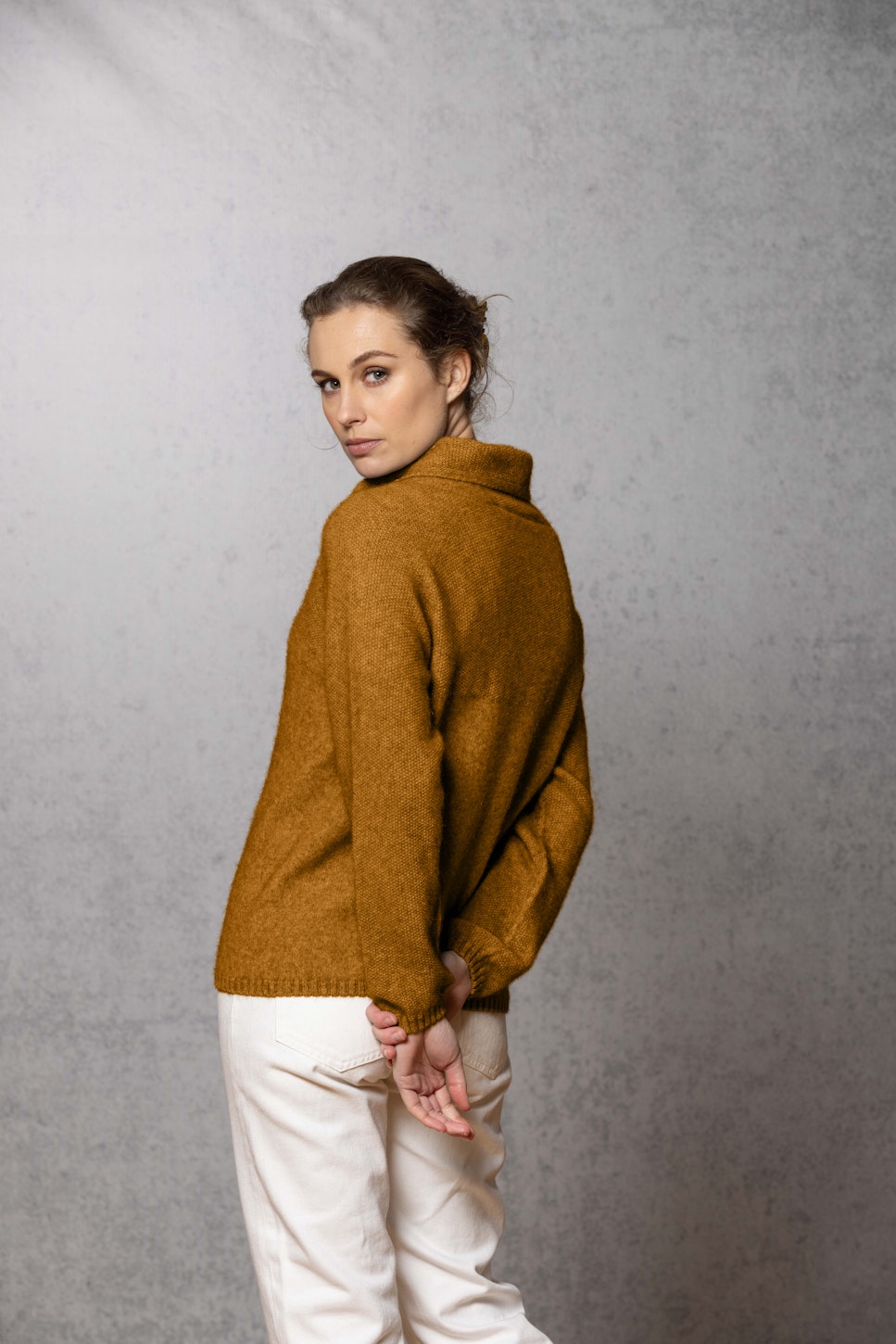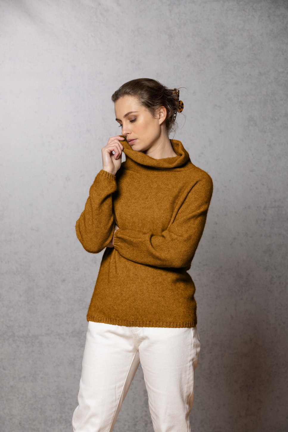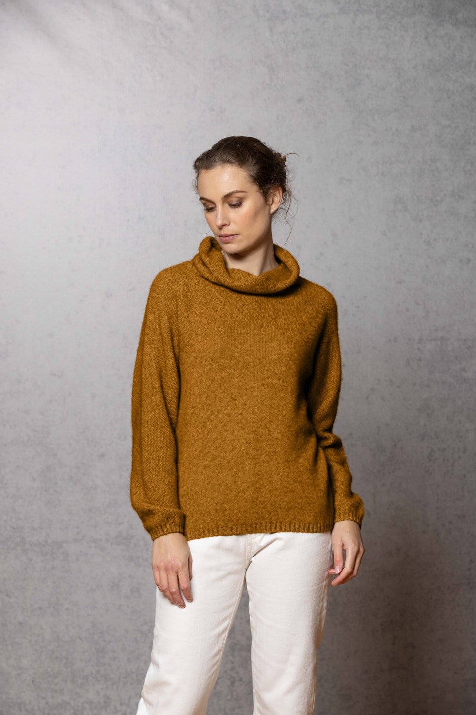 Relaxed knit cowl neck, moss stitch detail across front & shoulders providing a subtle detail variation. WholeGarment seamless construction. Our Best Selling style for AW2024.