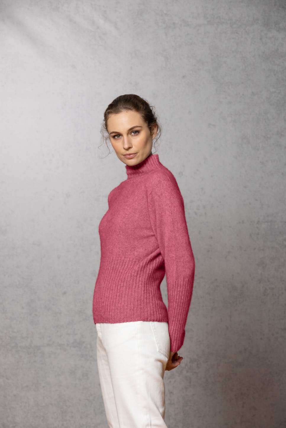 Slimfit single jersey construction, integral turtle neck. WholeGarment seamless construction.