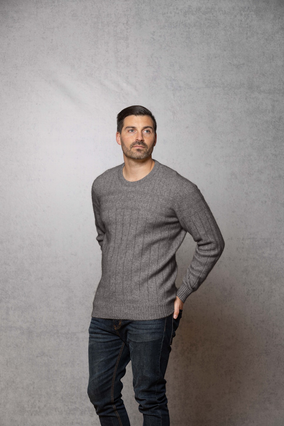 The Riverton brings stripe effects together with a broad rib in the body and narrow pin stripes in the upper body and sleeve.